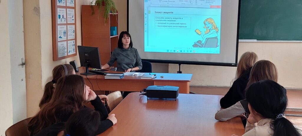 Практичний психолог ліцею Леся Зизич та майстер виробничого навчання Марина Шелепець долучилися до проведення заходів разом з Національним банком України. Для здобувачів освіти (у групі №13 та №21) проведено освітній захід «Поради з кібербезпеки та схеми шахрайства у воєнний час», в ході якого вони дізналися цікаві факти про актуальні схеми шахрайства, активно обговорювали права та обов’язки користувачів інтернету, важливість дотримання правил безпеки платежів та розрахунків в Інтернеті, а також жваво дискутували про види кібербулінгу.