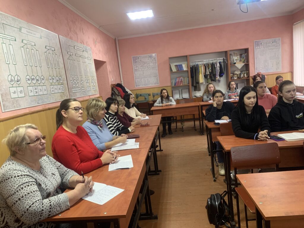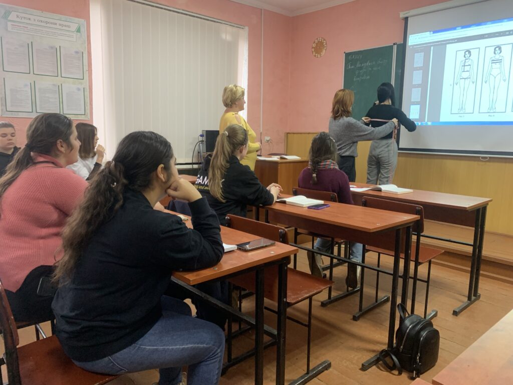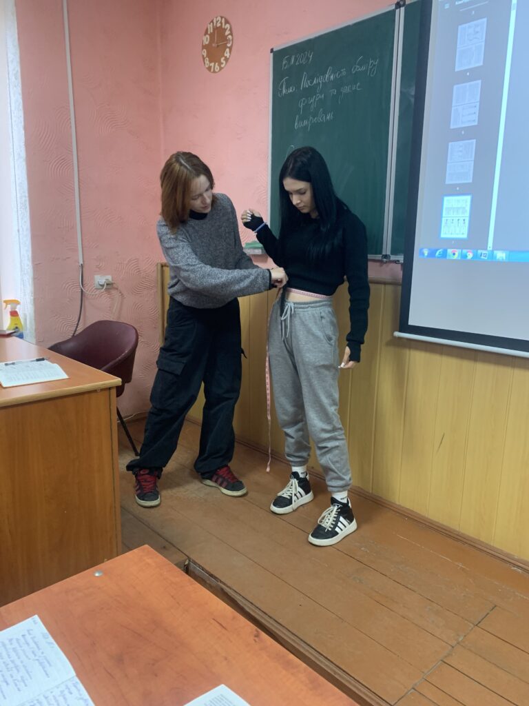 Завершенням тижня професії «Швачка. Кравець» став відкритий урок з предмету «Основи конструювання одягу» на тему «Послідовність обміру фігури та запис вимірювань», який підготувала та провела викладач спецдисциплін Марина Шелепець. В ході заняття учні повторили основні правила зняття мірок та їх умовні позначення . Також були використані елементи ділової гри, де одні учасники були замовниками, а інші – майстрами.