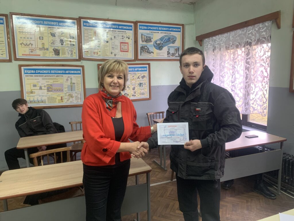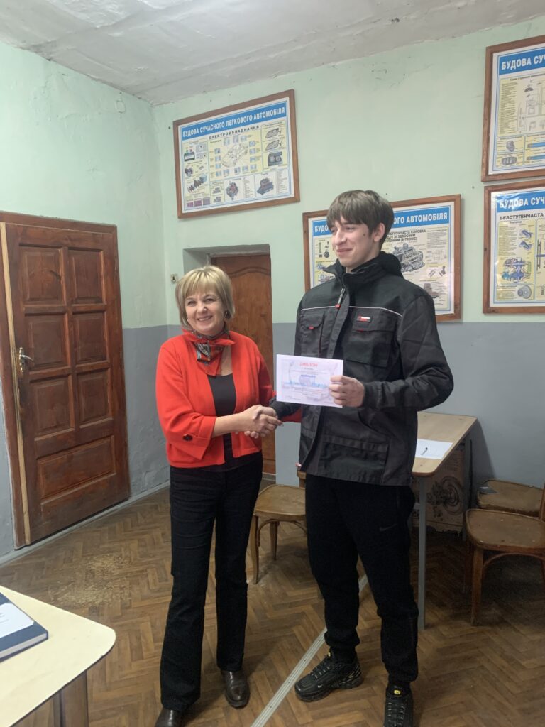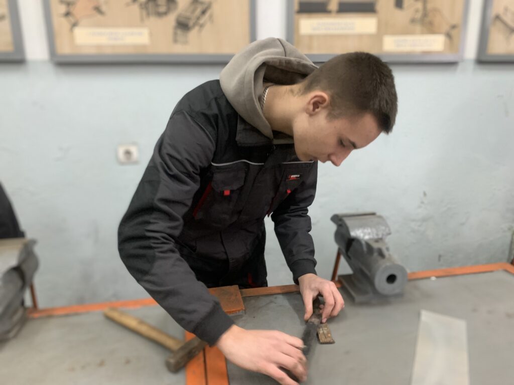 З метою популяризації робітничих професій у закладах освіти проводяться конкурси фахової майстерності серед здобувачів освіти на звання «Кращий з професії». Сьогодні такий конкурс був проведений у групі №32, кваліфікація: рихтувальник кузовів 3-го розряду. Конкурс включав теоретичний і практичний тури. Під час теоретичного туру здобувачі освіти виконували різнорівневі тести, розроблені викладачами спеціальних дисциплін – Валентином ЛЕШАНИЧЕМ та Таїною МАЛЕШ. Практичні завдання з теми «Клепка. Розмітка швів для виконання клепки та свердління отворів», підготували майстри виробничого навчання – Павло ДУДАШ та Валентин ЛЕШАНИЧ.