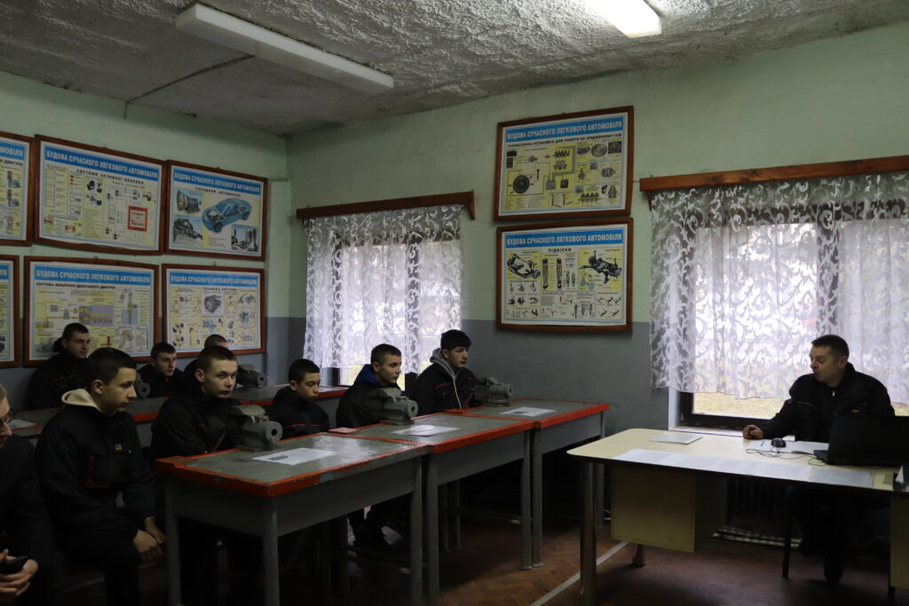 Богдан Юрійович акцентував увагу учнів на тому, що в сучасних умовах кожен є частиною великого фронту: поки воїни захищають країну на передовій, майбутні автослюсарі мають готуватися до відбудови та підтримки обороноздатності держави своєю професійною майстерністю.