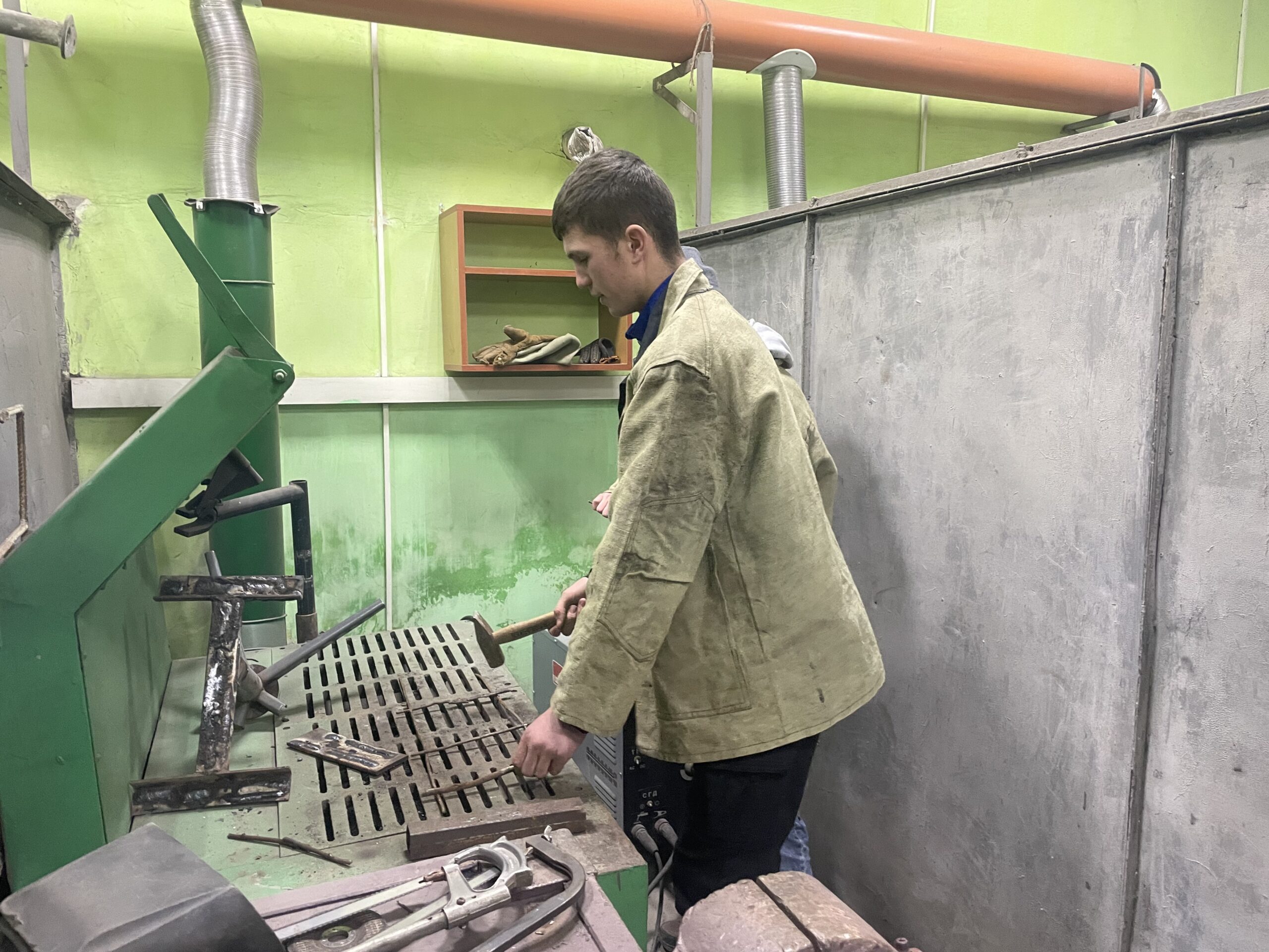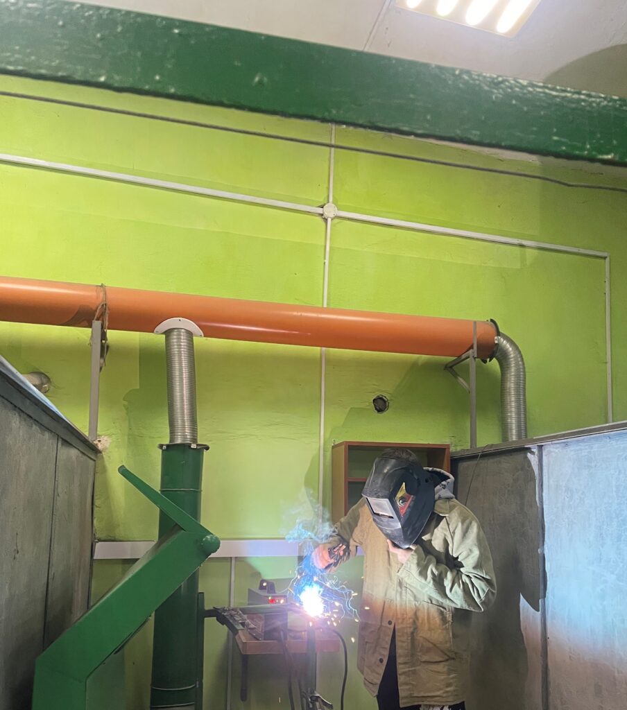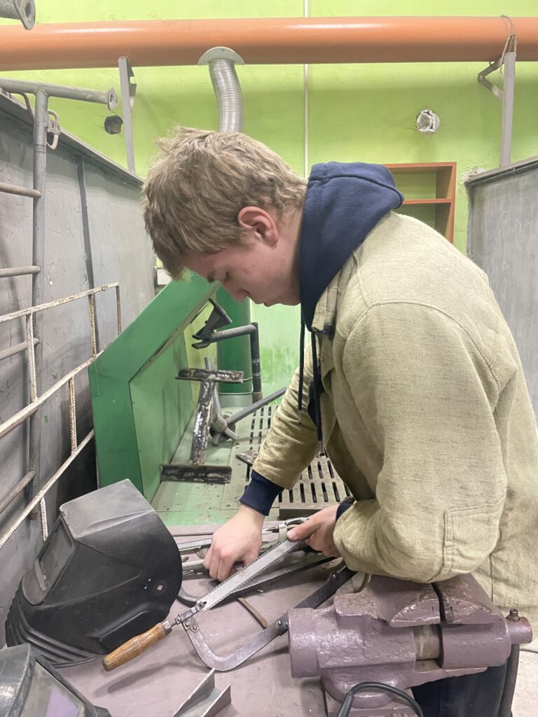 Сьогодні на уроці виробничого навчання здобувачі освіти групи № 24 з професії «Слюсар зі складання металевих конструкцій. Електрогазозварник» удосконалювали навички ручного дугового зварювання, під час ремонту металевого каркасу стільця.